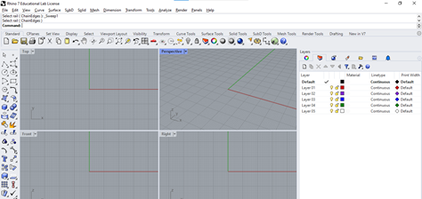 - Viewportsنمایها: راینو چندین نمای (بالا، جلو، راست و پرسپکتیو) ارائه میدهد تا مدل شما را از زوایای مختلف مشاهده کنید.